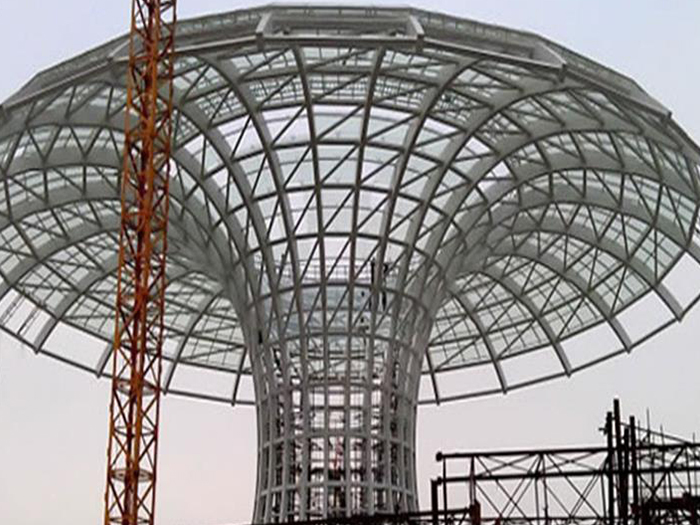 二、球形网架结构因其结构新颖,受力合理,自重轻、用钢量低等优点。如大型体育场馆球形黄骅螺栓球网架、公共场馆球形网架、电厂黄骅螺栓球网架、水泥工业球形网架、仓储物流球形网架、黄骅干煤棚工业球形网架、黄骅收费站黄骅加油站球形网架、展览中心、影剧院、商场、航站楼、候车厅、工厂黄骅车间、仓库、电视塔等球形螺栓球节点网架。国内球形网架结构主要分为:黄骅焊接球节点网架及螺栓球节点网架两种。螺栓球节点网架其构件工厂内加工量较大,现场安装便捷,适用于现场工期紧,黄骅施工条件、用电量受制约,网架形状复杂、黄骅杆件定位困难的异形结构。螺栓球节点球形网架系统基本由黄骅杆件、螺栓球、支撑支座等组成。按照节点形式可分为交叉黄骅桁架体系、四角锥体系、三角锥体系等。支撑方式多为固定支座支撑。对于大面积、大跨度及有特殊受力或伸缩要求的网架结构可采用橡胶支座、滑移支座、球铰支座等支撑形式,以满足结构自身的受力稳定、均衡,便于内力释放等设计要求。